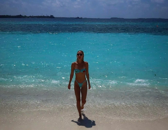 最后来猜一猜认一认。下面这张图片是一位球员在海滩休闲。不作提示,您能认出她是谁吗?